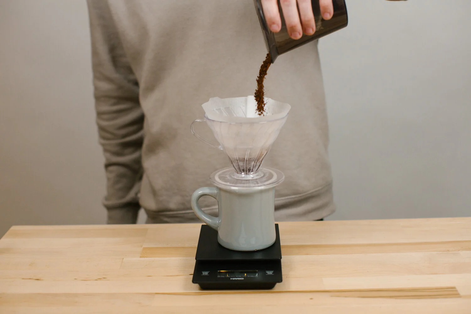 Place in pour over. Depending on how finely your coffee has been ground 2 tablespoons of coffee should weigh approximately 10 grams. 65 oz 180 ml of water should be used with about 2.